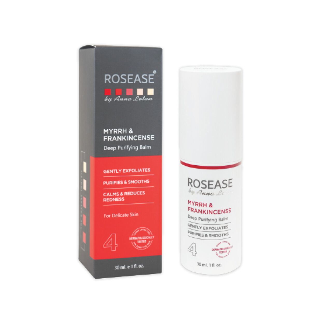 - Purifying CO2 extracts of Myrrh, Frankincense, Hops, and Caper Bush flowers calm irritated skin while reducing its redness.